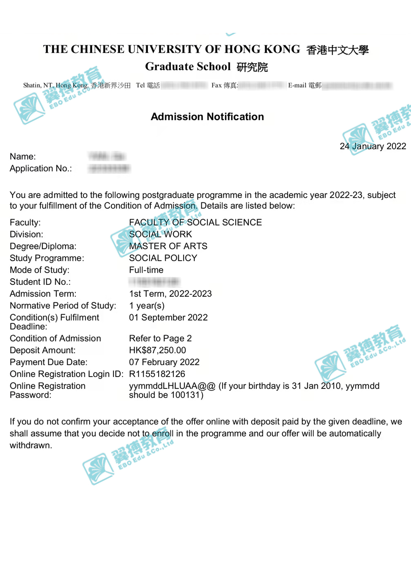 Admission list錄取名單